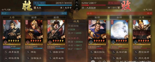 • 被动效果让他战斗中优先行动,同时提升兵刃主动技能发动率(10.0→11.1%),还附加30%几率增伤(20.0→22.2%,受武属性加成)