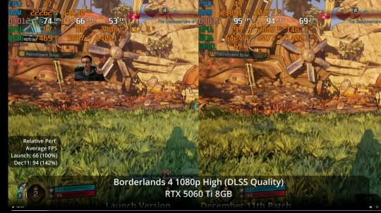 1080P,高画质,DLSS质量,首发版 vs 12.11补丁后帧数对比(66 vs 94),提升42%