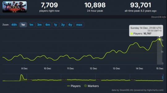 从绝对增长来看,《神界:原罪2 终极版》增幅最大,其12月12日的Steam同时在线玩家峰值较前一日增加了2,326人,增长63%,12月14日同时在线人数则增长到10,898。与此同时,《神界:原罪 增强版》的峰值在同一时期几乎翻倍,自2025年10月初以来首次突破1,000名同时在线玩家。