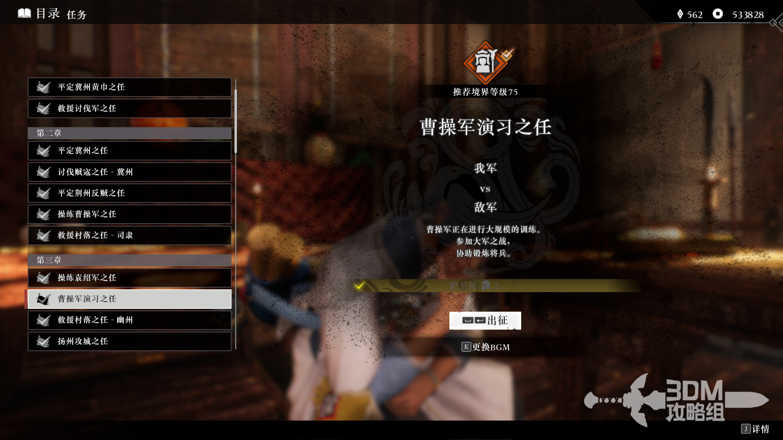 章节 关卡名 给予的数量 第一章 颍川之战 1 第二章 荆州之战 1 第二章 汜水关之战 1 第三章·曹 豫州之战 1 第三章·刘 北海之战 1 第三章·刘 吕布救援战 1 第四章·孙 牛渚之战 1 第四章·孙 神亭之战 1 第四章·孙 西塞山之战 1 第四章·孙 吴郡镇压战·2 1 第五章·曹 白狼山之战 1 第五章·刘 汝南之战 1