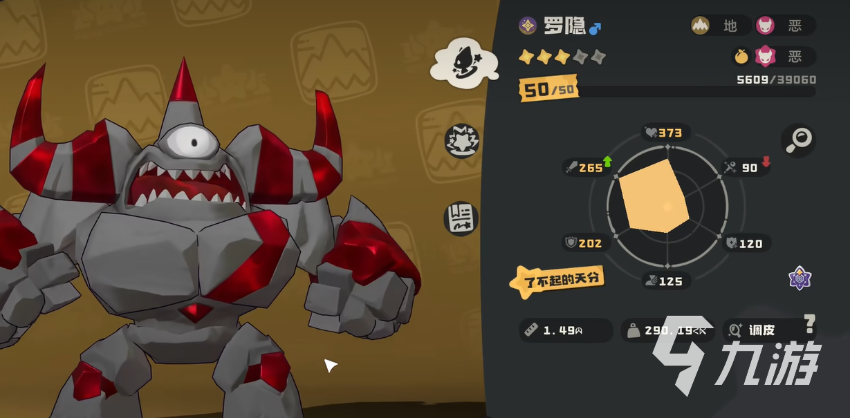从基础种族值来看,罗隐总和达619点,在全图鉴中稳居梯队前列。其中物理攻击属性尤为突出,构成其核心输出基础;生命值设定兼顾生存需求,使其具备一定承伤能力,避免陷入“一碰即倒”的脆皮困境;速度属性处于中等偏上水平,足以支撑常规先手节奏与轮换衔接;双防虽未重点强化,但与其主攻型定位高度契合,并非设计短板,而是资源分配上的合理取舍。