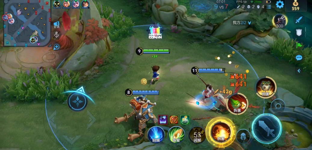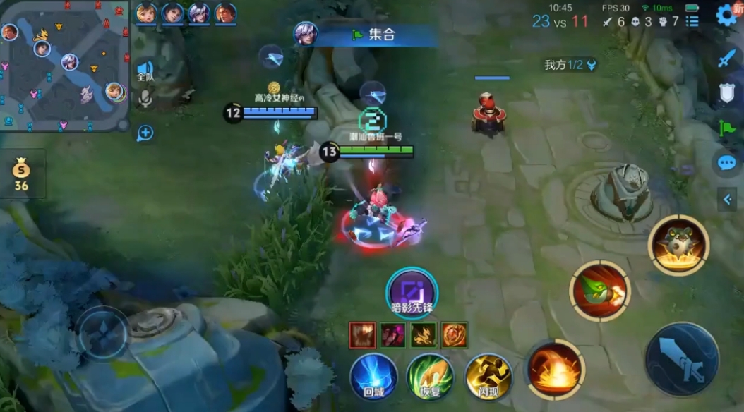 一级对拼时就提前空A四下,然后面对小兵打出扫射,之后接一个一技能和强化普攻就能迅速清掉兵线。一技能是造成伤害和范围减速,范围较大能很好消耗敌人,还能探草丛中的敌人视野,但不能探隐身的敌人。