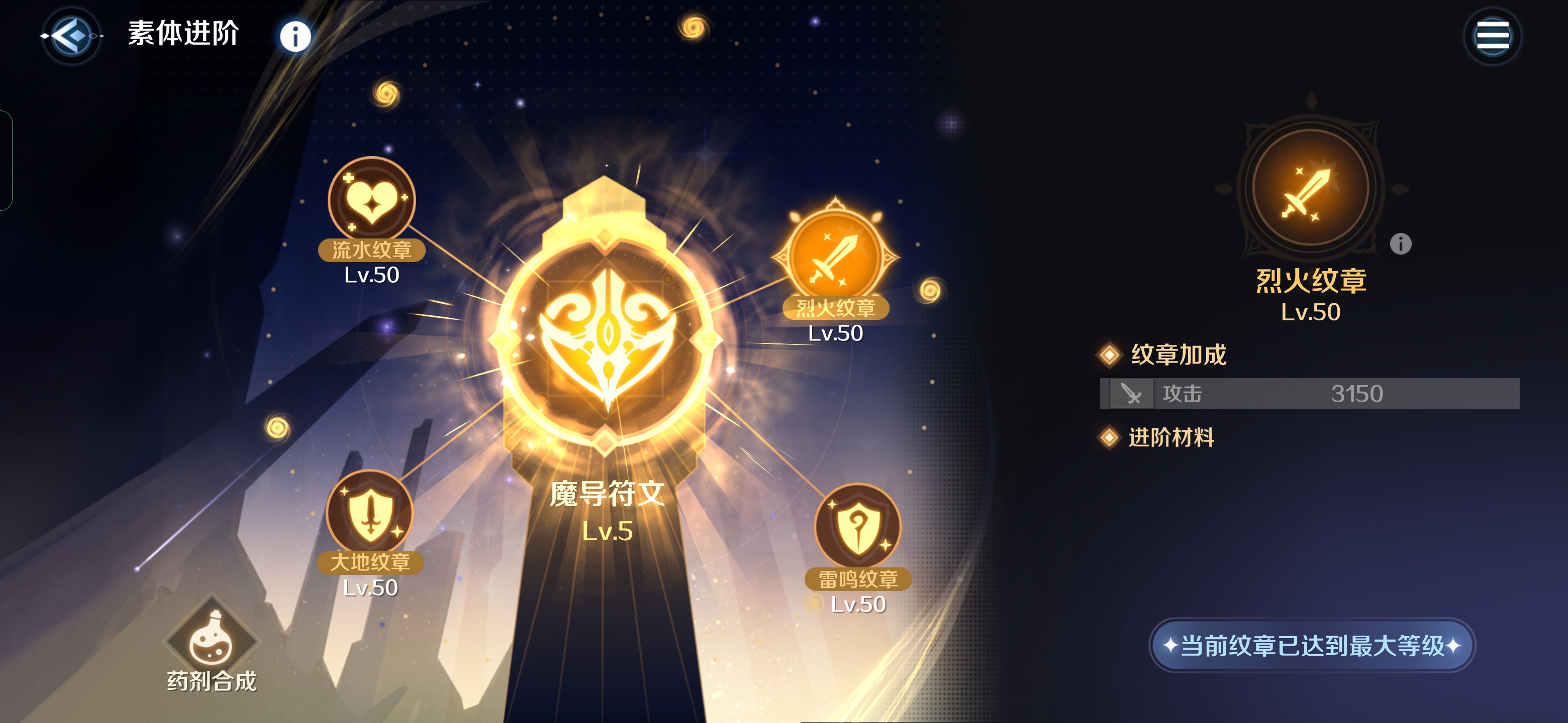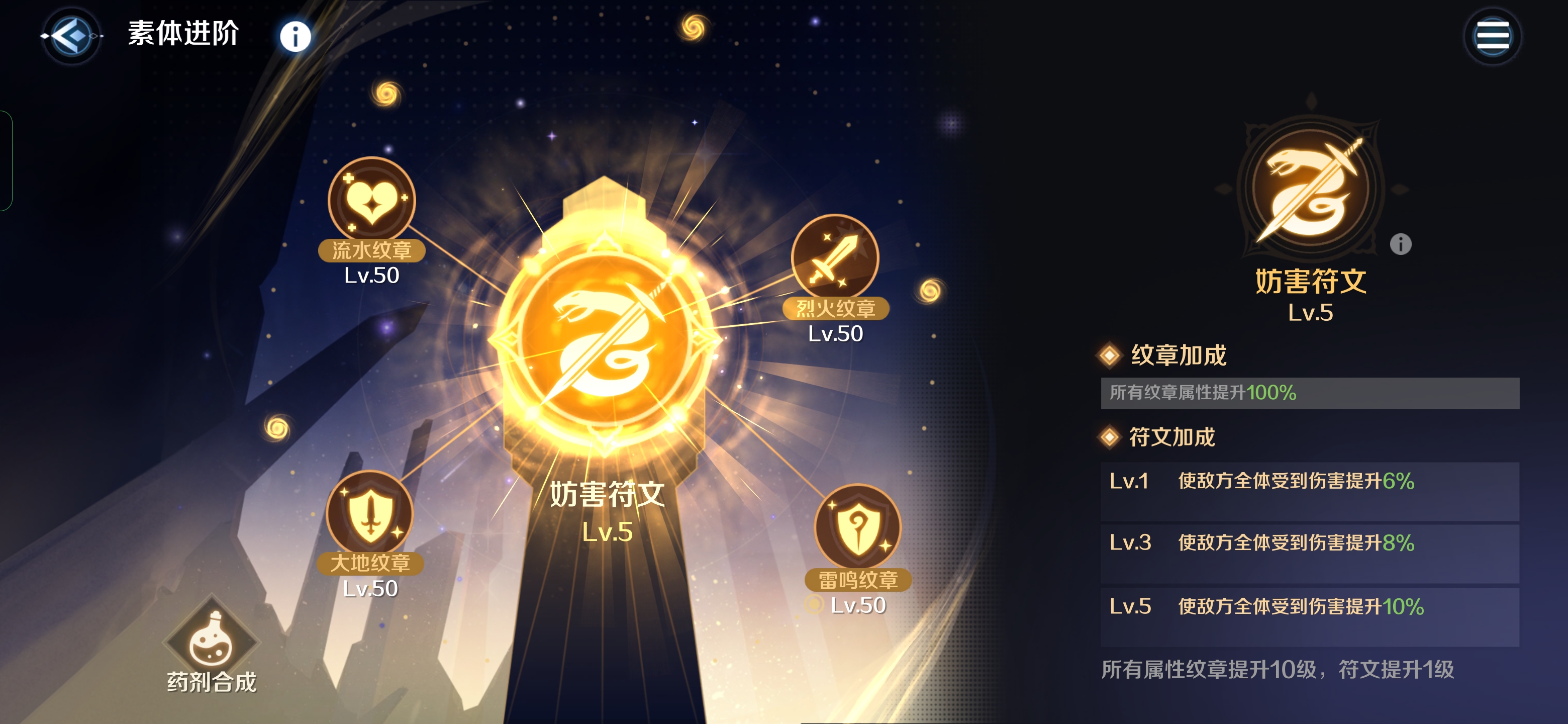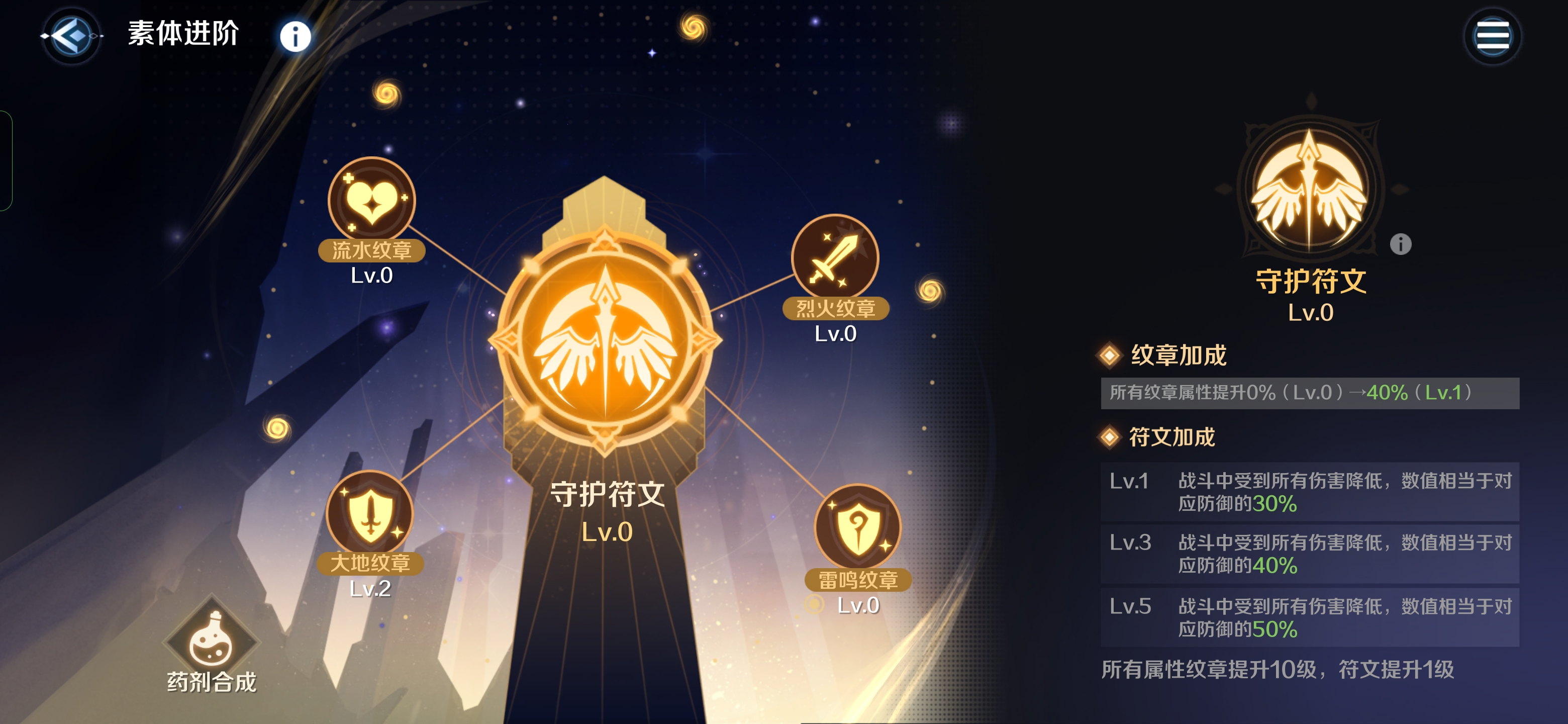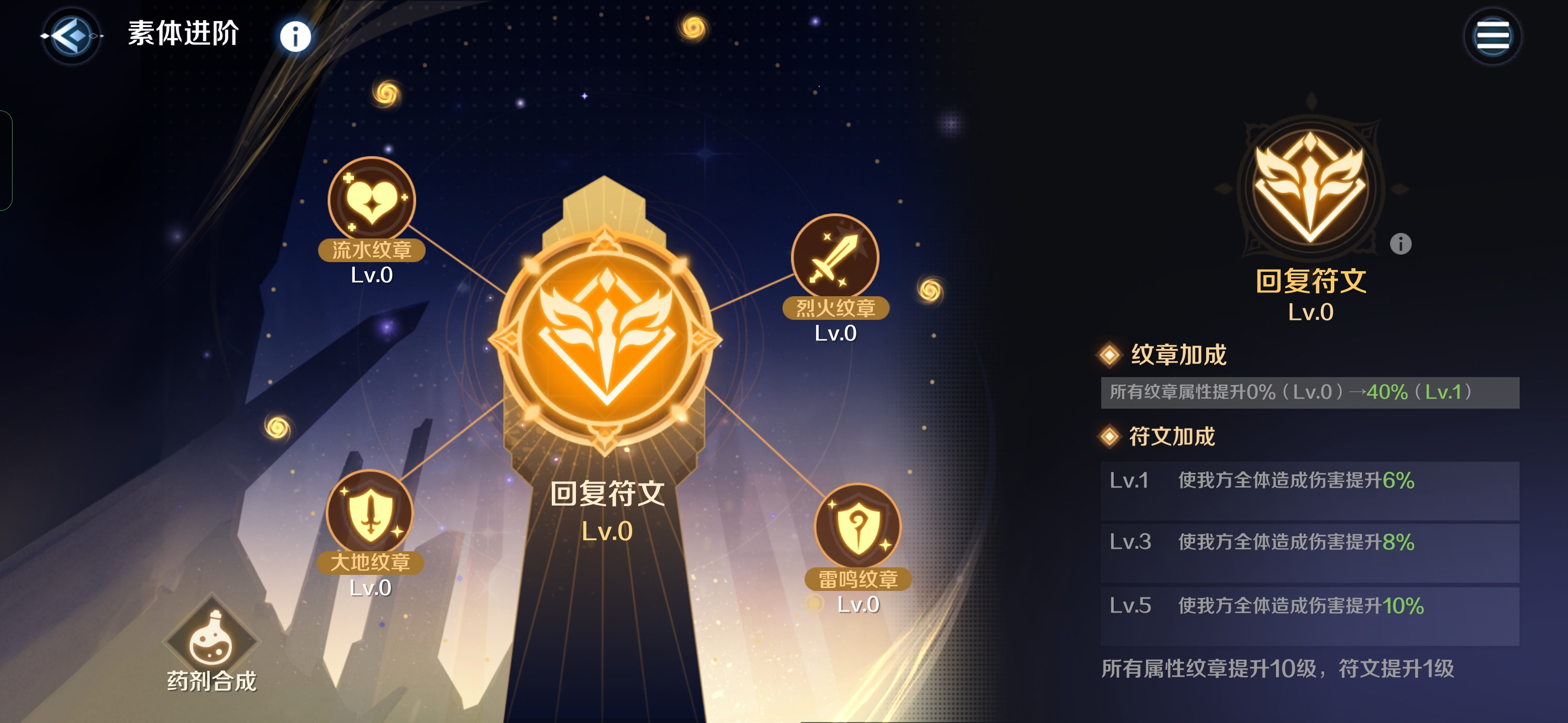 素体升级后除了基础属性的提升还可以解锁符文效果。