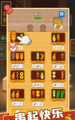 区别于传统操作模式,该游戏融合三消机制与经营逻辑。顾客下单后,屏幕上会随机出现多种烤串图标,玩家需通过滑动调整位置,使三个及以上相同烤串组成连线,即可自动装盘上菜。关卡难度随进度提升,考验空间规划与反应速度,卡通画风轻松诙谐,适合碎片化时间游玩。