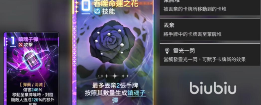 整体来看,黑玫瑰诗人的卡组设计围绕“子弹”与“弃牌”两大核心机制展开,通过灵活操控卡牌和资源流转,能够在不同战斗阶段持续获得高额伤害加成。这种自循环、高成长的输出模式,使她在面对多种敌人时都具备极强的适应性和压制力。因此,就实战强度而言,作为主输出位的她无疑处于较高水准。