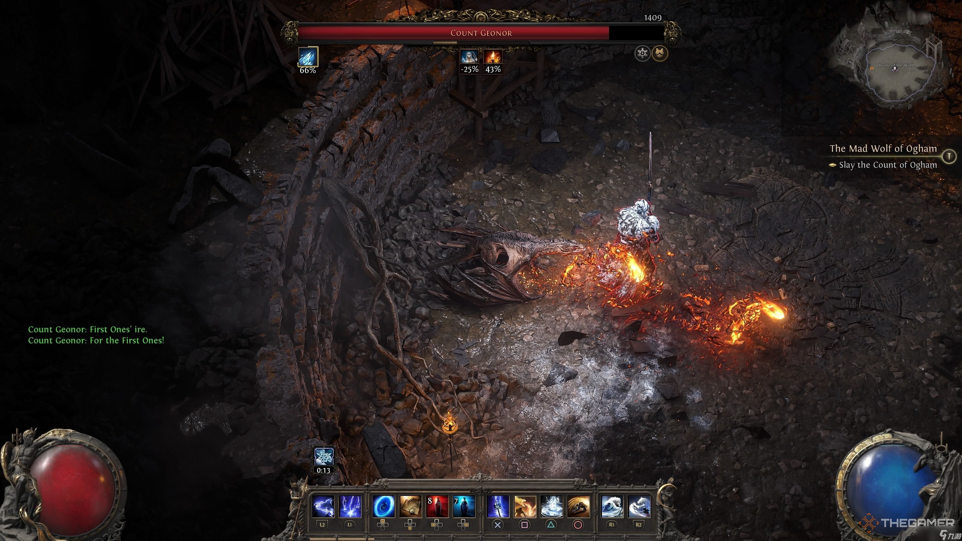 虽然你从熊形态建立的火焰技能也能发挥不错的效果,但这里的主要输出是电击,因此你会发现很多推荐的技能和装备都更偏向这些方面。你可以在护符上选择飞龙形态,随意在三种形态之间切换。