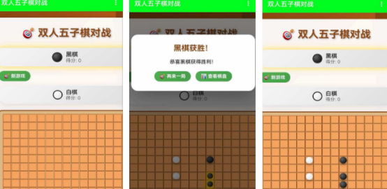 采用复古木质棋盘视觉设计,搭配黑白双色棋子,支持本地直连或在线建房匹配。玩家选定阵营后,通过触控落子,目标为率先将己方五枚棋子连成横、竖、斜任一方向直线。过程中需同步预判对手布局意图,兼顾进攻与防守双重策略维度。