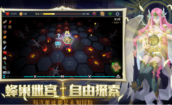主打卡牌构筑与多层迷宫探索的策略向作品。内置300余张功能各异的卡牌,涵盖攻击、防御、增益、陷阱、召唤等类型,支持自由编组与流派实验。地图采用六边形蜂巢结构,每次进入均生成全新布局、事件节点与敌人分布。玩家需在有限步数内权衡路线选择、资源获取与风险规避,达成最终层Boss挑战目标。