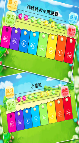 完整还原88键钢琴布局,每个琴键标注标准音名(C/D/E等)及对应唱名(do/re/mi)。内置《两只老虎》《小星星》等8首儿歌跟练模式,音符提示条随节奏滚动;自由演奏时启用节拍器功能,帮助建立基础韵律感。