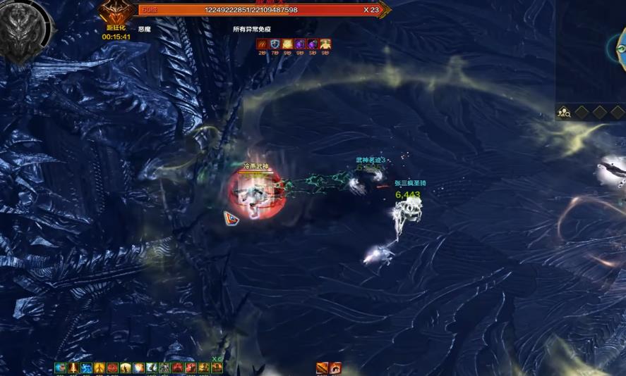 魔剑外侧的黄圈会击飞,接着会攻击一次内圈,然后便是环形外圈,一般在此时就能完成打瘫。打瘫失败后就会被团灭,魔剑是没有减伤的,所以大家尽量不要省技能来压低血量。卡门必定会出现在一名玩家背后进行下劈攻击,接着是上挑剑气,当其两百七十六管血左右时会瞬移到地图中心。此时需要迅速靠近boss来躲避外圈的旋风,它还会朝着一个方向走动,我们先暂时远离。