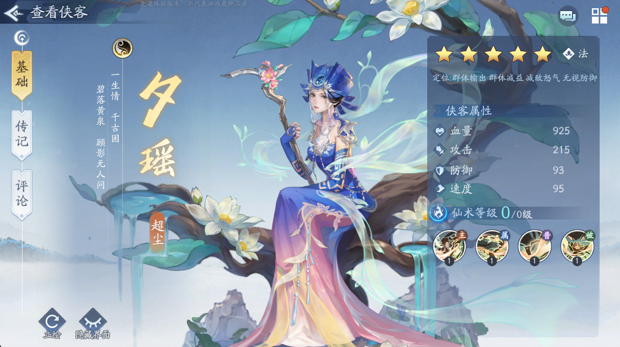 推荐侠客为:水珍(法)小蛮(当期珍系)、阴阳(法)夕瑶、土系(巫)王蓬絮