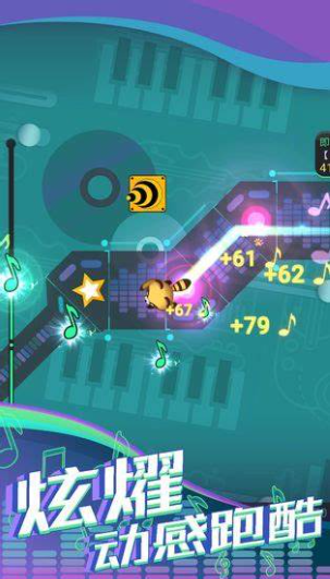 该产品将节奏训练与跑酷机制融合,主角为拟人化小怪兽角色,支持形象自定义。角色沿固定轨道自动行进,玩家需依据背景音乐的强拍节点进行点击操作,完成跳跃或侧滑动作。随着曲速加快,角色移动频率同步提升,要求孩子持续关注节拍变化并即时反应,过程中身体常不自觉随律动微晃,实现听觉—运动双通道协同训练。