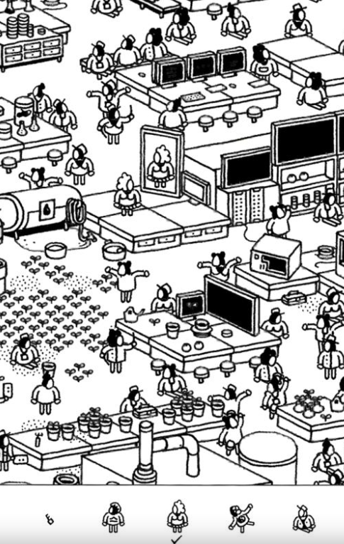 采用手绘质感单色画风,构建了超过百个结构复杂的横向卷轴场景。目标物品常被遮挡于前景植被、建筑夹缝或动态角色身后,需主动点击草丛、掀开木板、拉动绳索等触发隐藏区域。画面信息密度高,且无颜色区分辅助,极大考验空间推理与局部特征识别能力,是硬核找物爱好者的进阶之选。