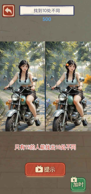 主打经典“找不同”玩法,提供大量高精度美术图库,涵盖卡通角色、自然景观、城市街景等多种主题。进入关卡后,画面自动左右分屏,呈现两幅高度相似但存在十处细节差异的图像。玩家需在倒计时内快速识别并点击全部差异点,考验瞬时观察力、图像记忆与注意力分配能力。