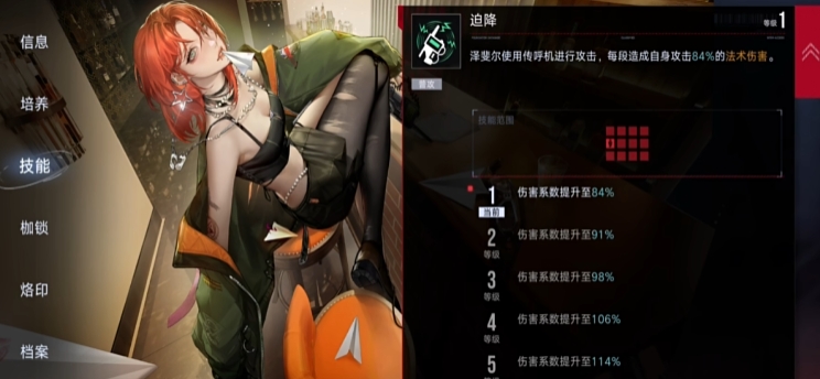 被动一飞行模式是释放必杀和专烙时能给敌人挂上减疗,满级能降低敌方百分之三十治疗效果,这个减疗配合必杀有很好的效果,也能使她在特殊关卡作为对策卡使用。被动二信号偏移满级时能使受到减疗效果的敌人造成伤害降低百分之十,该效果能叠加三层,在血量压力大的关卡可以尝试让她上场。