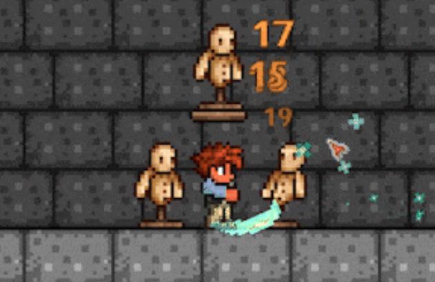 泰拉魔刃是攻击力为十七点的近战武器,在使用时挥舞模式与阔剑劈砍、短剑刺击等都不同。毕竟虽然它外形看起来像是剑,但是其实攻击时并不会出现实体的剑体,伤害模式是朝着鼠标指向位置进行难以观测到的劈击。在攻击范围内存在的任何生物受到的持续伤害,都会远超过该武器面板描述二十五使用时间的频率。该伤害区域范围较大,虽然是在玩家面前生成,但是甚至能攻击到我们背后一小段位置,防止有怪物从背后偷袭。
