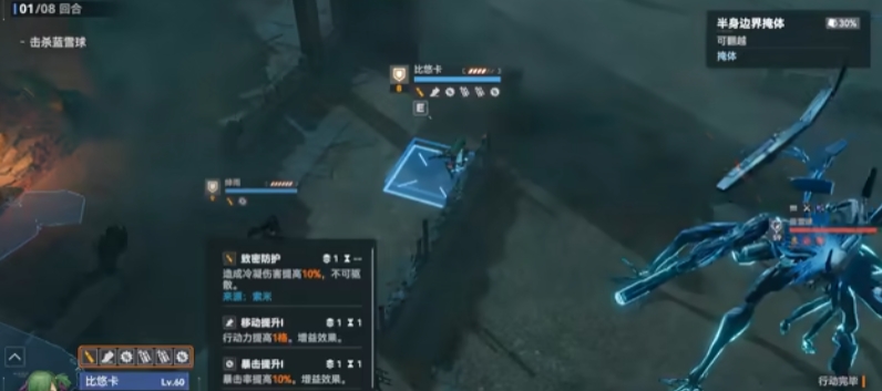 在武器的选择上比悠卡首选林野精灵,这把武器能在比悠卡移动后攻击时提升伤害,只要移动两格就能吃满效果,如果目标拥有负电荷还能进一步提高电导伤害,在增伤机制上比较契合比悠卡。武器商店兑换的游星也很适合比悠卡,比悠卡的击杀能力出色,还拥有再动能力,可以快速叠满该武器的被动,当游星叠满被动后比悠卡在主动攻击后获得移动追加,使用三加二技能连招时能连续移动四次。攻击前移动九格,使用三技能后再动两格,使用二技能后再动两格,接着触发二技能攻击后传送再移动六格,一共就是十九格。