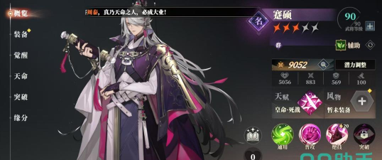 他的突破技“深谋远虑”会在战斗开始时给敌方速度最多的几个单位施加“催眠”,升级后会让拥有“王佐之才”队友的攻击,不会移除目标的催眠,他的天赋技“运筹帷幄”会在放出绝技后,让自身得到“王佐之才”的特殊增益。