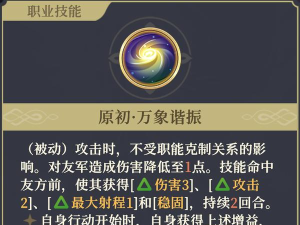 激活个性技能后,沙娜姿进入“原初之力”状态,并触发觉醒光环效果,提升自身的攻击与防御属性。被动方面,她在攻击时完全无视职业之间的克制关系;对友方单位造成的误伤恒定为1点。每当技能命中友军前,自身会获得伤害加成3、攻击力+2、最大射程+1以及“稳固”状态。此外,每回合行动开始时即可自动获得上述增益,保证持续作战能力。