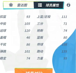 他在属性方面比较突出的有中投、跑动和传球,这能在快攻推进和外线进攻里面占据不小的优势,他的强化很多,像是篮板嗅觉能让扣篮加2,并且每次自己成功争抢到地板球、得分或助攻时,能让防守篮板竞争值加10点。