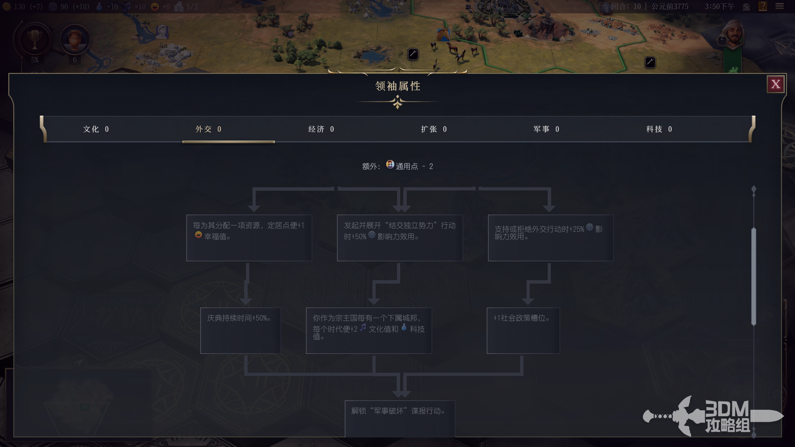 领袖选择:每位领袖可通过故事事件获得3点 -- 每个时代各1点。这些故事事件将在第25回合发生(标准速度下)。