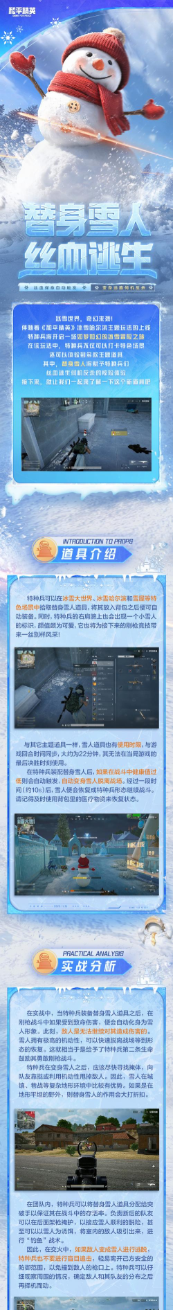 随着和平精英冰雪主题玩法的正式开启,玩家们将踏入一个充满奇幻色彩的冬日战场,在多个独具特色的场景中展开激烈角逐。除了欣赏精美的雪景地图,参与互动打卡外,还能体验到一系列全新加入的游戏道具,其中最引人瞩目的当属“和平精英替身雪人”。这款道具不仅外观趣味十足,更能在关键时刻实现逆境翻盘,下面我们就来深入了解它的获取方式与实战技巧。