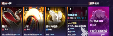 加点策略上,优先解锁独立卡牌以提升伤害与动量获取,随后投入暴击率,最后点满“发射上斩”。该技能所需材料不多,早期点出即可显著增强群攻能力。主动技能具备增伤与减伤效果,表现均衡,且EP消耗低。五星泽塔所附带的本能属性增伤与天上词条表明其为卡利佩量身打造的专武,其主动技能可稳定抽取费用最高的手牌,几乎等同于对“秃鹫发射”的定向调度。