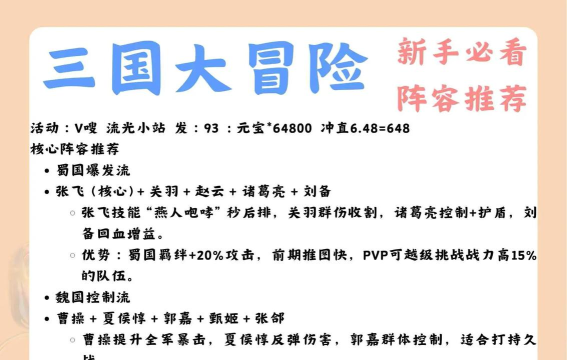 在《三国大冒险》这款策略卡牌游戏中,武将的个体强度对阵容的整体表现起着决定性作用。无论是在游戏前期还是中期布局阶段,合理的阵容搭配都能显著提升战斗效率。通过灵活调整角色配置,玩家可以构建出多种具备高输出、强生存或持续压制能力的战组合。本文将介绍几种实战中表现优异的阵容组合,帮助大家更好地理解如何根据武将特性进行高效搭配。