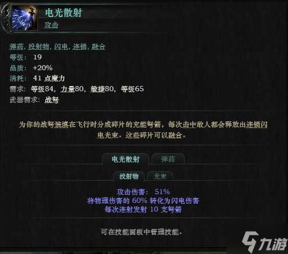 电光散射+阿尔琼的勋章+亢奋+闪电协调+分叉+快速攻击Ⅱ