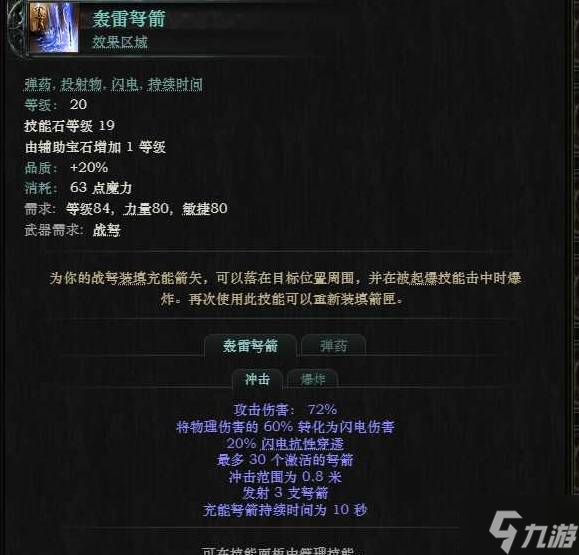 轰雷弩箭+范围击中+元素军械Ⅱ+闪电穿透+闪电协调+闪电专精
