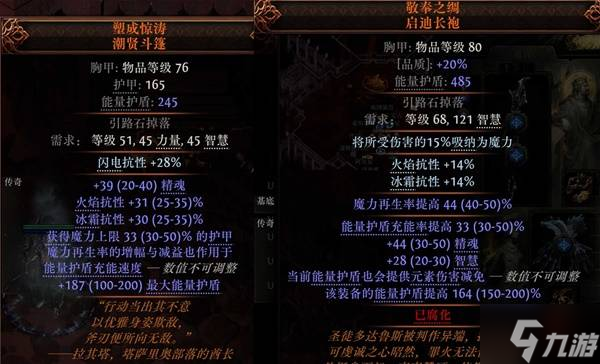 启迪长袍则提供了额外的元素减伤和魔力再生,还有更高的精魂,更高的护盾面板。