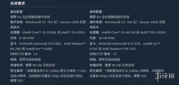 若你的硬件配置高于GTX970或RX 370,便能达到推荐配置,游戏将能够流畅运行。
