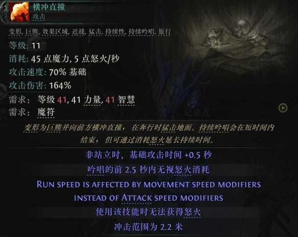 41级可学习巨熊的横冲直撞,满怒火后释放,跑图和BOSS攻坚战都可以使用。