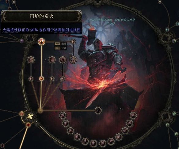 前两点升华点,点出司炉的炭火:火焰抗性的修正50%也作用于冰霜和闪电抗性。