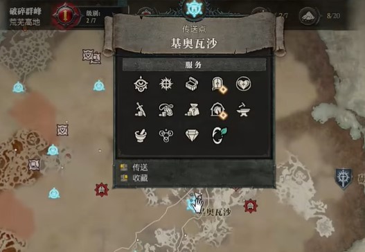 按M打开世界地图,找到基奥瓦莎,传送到这里后往右上角走,找到这个雕像修改就可以了,然后继续去级别2这里找到地狱深渊。