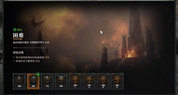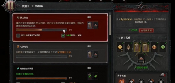 打完这个副本之后就解锁级别二了。级别二提示你要去打地狱深渊,要求难度悔罪。