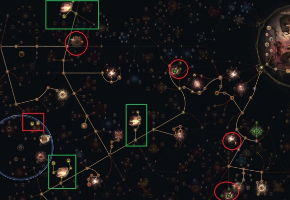 补充说明:在上赛季的后期GGG进行了改动,恢复III(助力之风III)回血效果无法对无冷却战吼生效,也就是说上赛季前中期非常强悍的恢复能力被砍了一刀,如果继续点祭血术的话,难免会出现很大的回复缺口,因此上文所述不点祭血,吼和盾墙,一个用蓝放,另一个串阿特鲁伊用血释放,将消耗均摊,是我给出的解决方案