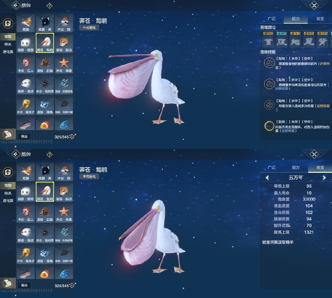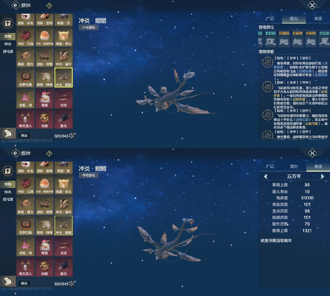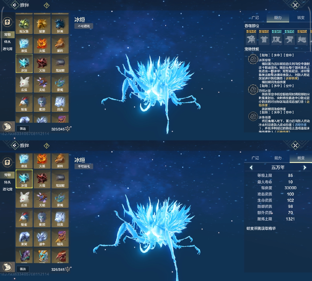 斗兽t1,四穿透部位,三尾巴一翅膀部位,吞噬变异部位最便宜的一只进化宠,养成成本大缩减,互动吞噬青木灵蕴短暂提高对应属性,2000元素穿透也未尝不可(必养)