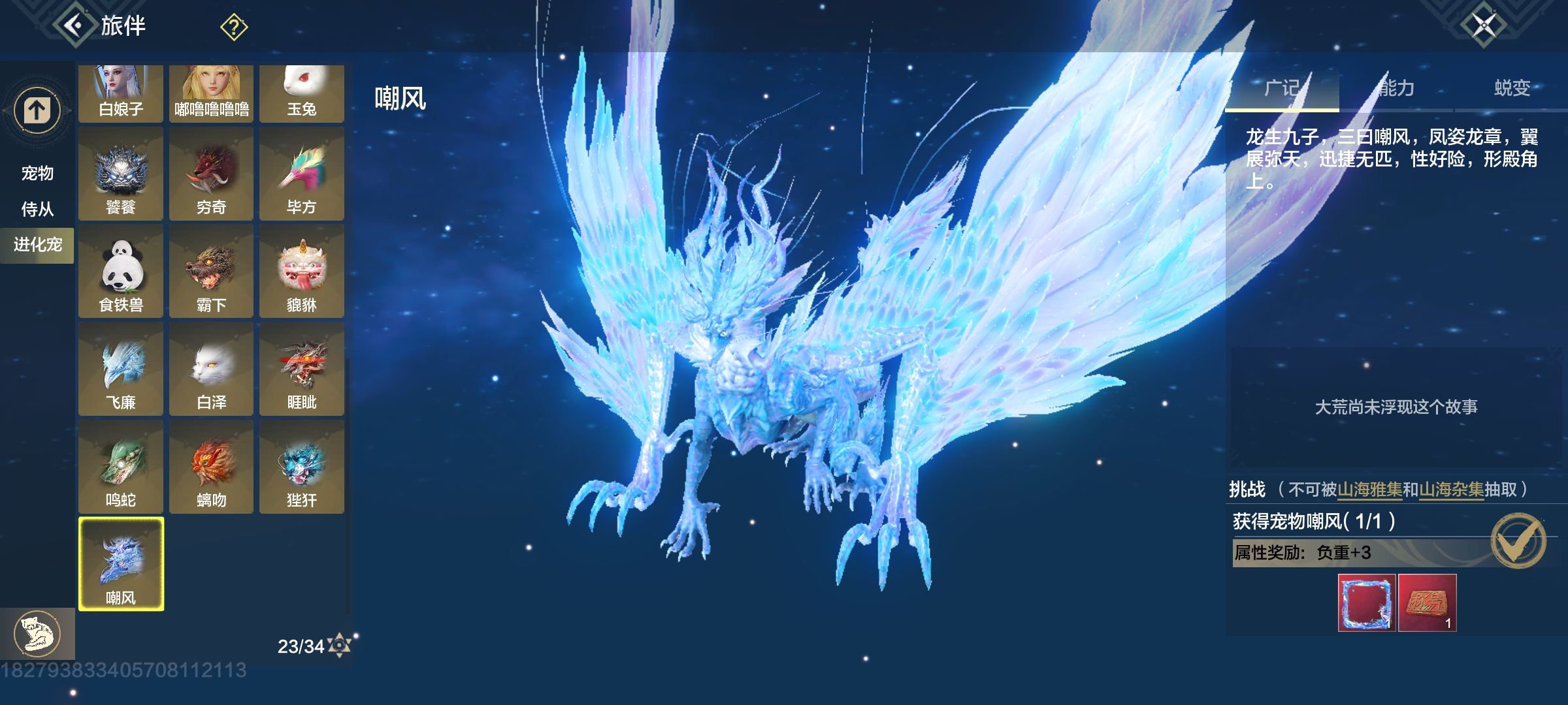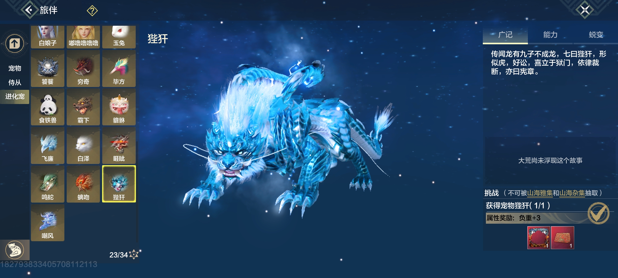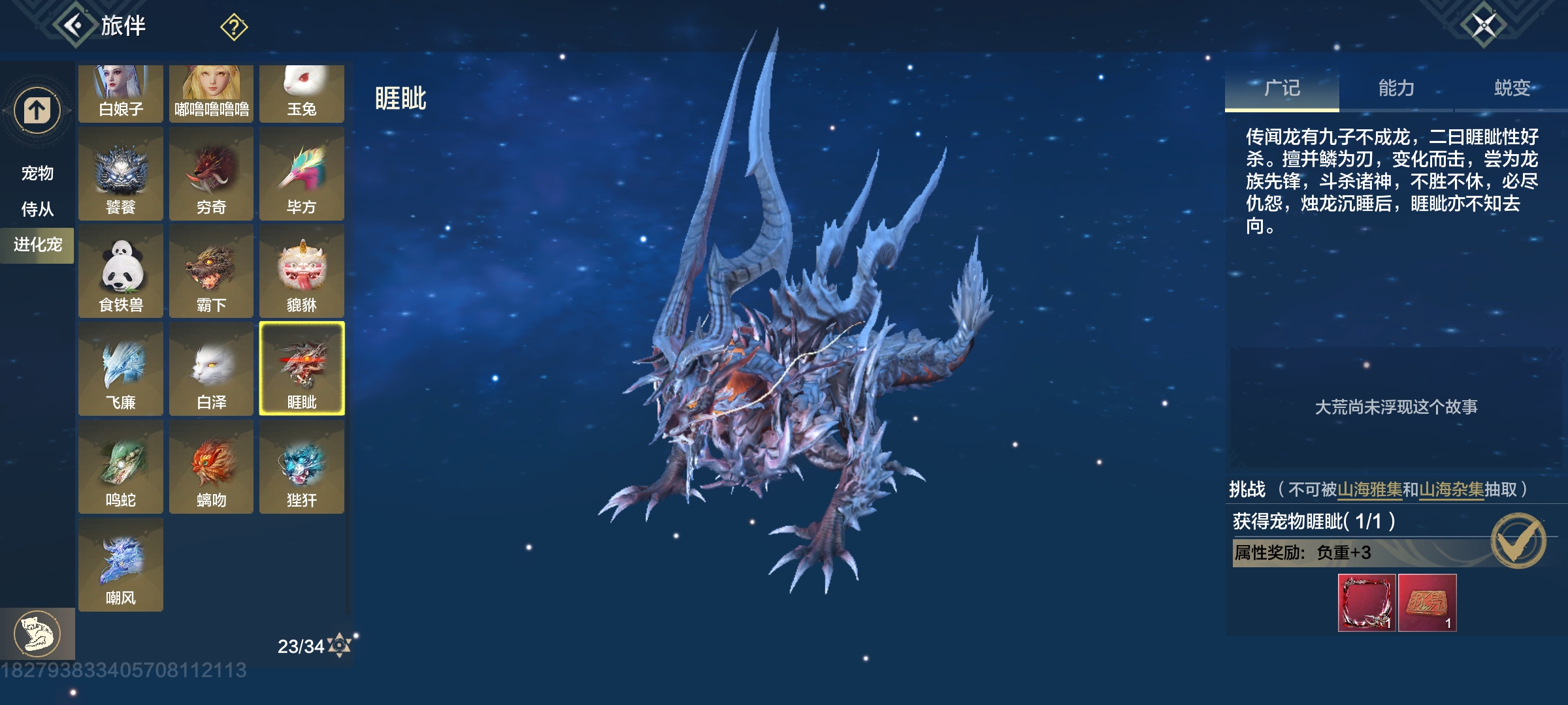 双穿透部位,104攻击资质,大荒水边有幼年,高偏转比较好弄(推荐培养)