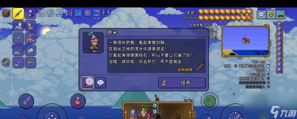 在泰拉瑞亚中,不同地点的钓鱼结果也会有所不同。为了快速完成渔夫任务,你可以选择位于较深水域的地点进行钓鱼,因为这里有更多品质较高的鱼类。