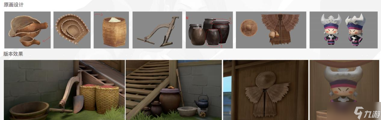 为了增加地图的丰富程度,制作组从现实中取材,复刻了苗寨村落里的水瓢、簸箕、蓑衣等物件。