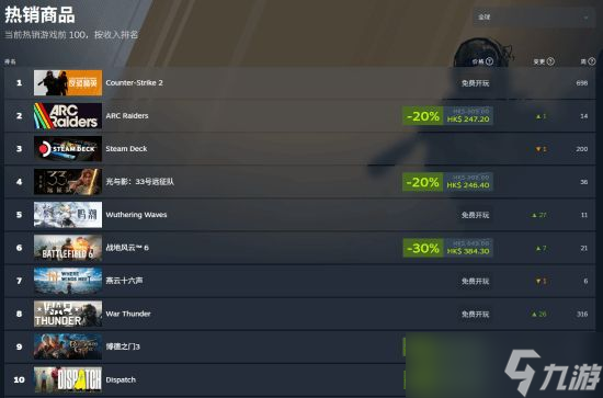 《鸣潮》在Steam全球热销榜排名第五,超越国产开放世界大作《燕云十六声》,仅次于TGA年度游戏《光与影:33号远征队》并且排名仍在不断升高中。