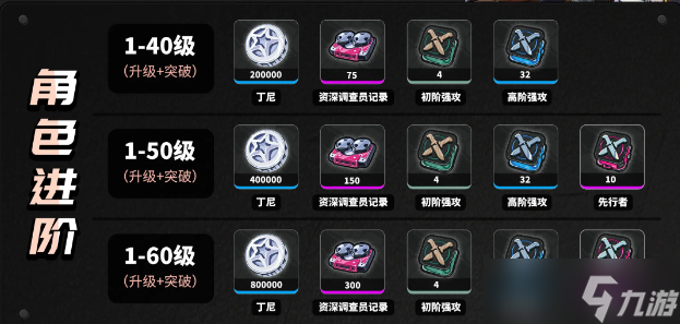 培养突破材料一览
