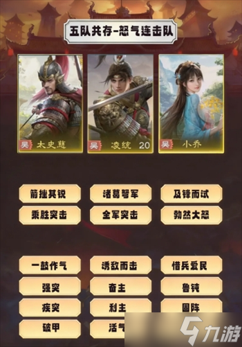 郭嘉:可以带法系突击技能,还可以留两个武力突击技能给太史慈怒气弓使用。而且满红郭嘉还自带减伤。