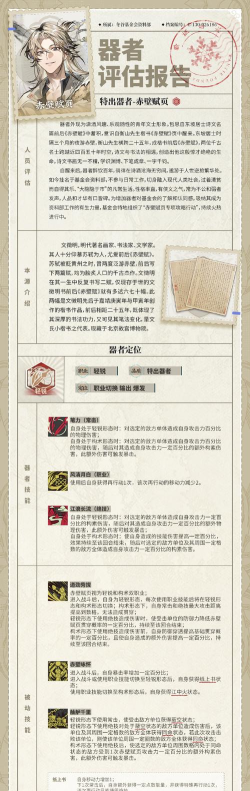 物华弥新游戏中有着众多角色,他们被称为“器者”,分为轻锐、远击、宿卫、构术、战略五个职业,特出、优异、新生三种稀有度。那么游戏中新器者赤壁赋页即将登场,器者技能是什么呢,小编为你准备了一份攻略,一起来看看吧~