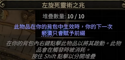 然后使用削切之兆+混沌去把领主词条顶掉,并洗出一条你需要的词条,物理百分比或者点伤,看需要不过推荐是物理百分比的词条,这里伤了一条百分比的复合词条。