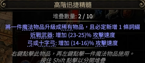 先用高阶迅捷精髓,上一条攻速词条