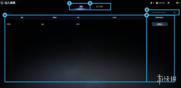 5、如果已经有想要加入的军团,可以输入名称查询,申请过后可以从加入申请”查看已发送的申请。