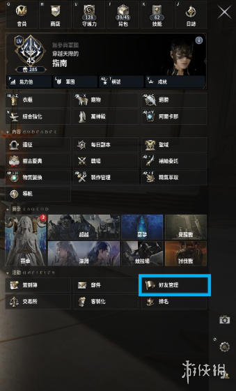 1、玩家可以先打开游戏内右侧的设置页面,找到好友管理”选项。