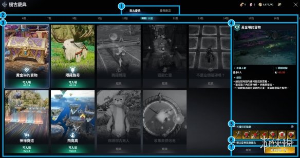 标记2是进行时间,表示可确认各时段可进行的树古庆典内容清单。